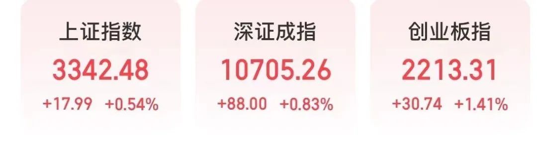 上午收盘,上证指数上涨0.54%,深证成指上涨0.83%,创业板指上涨1.41%。